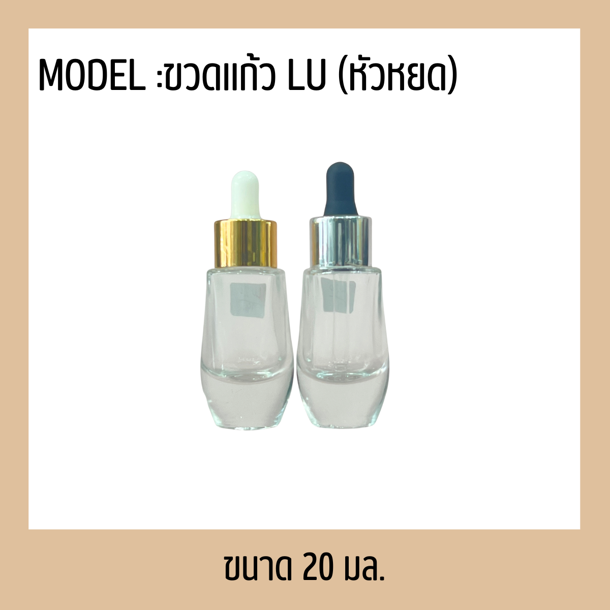 – ขวดแก้วรุ่น LU (หัวดรอเปอร์) ขนาด 20 มิลลิลิตร ราคา 16 บาท