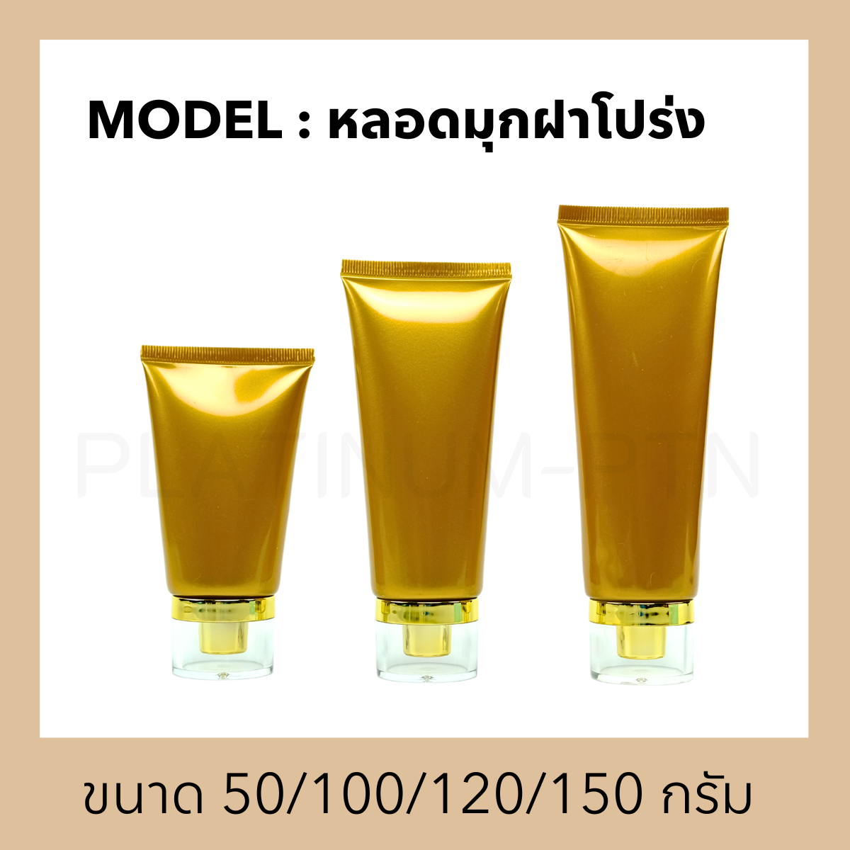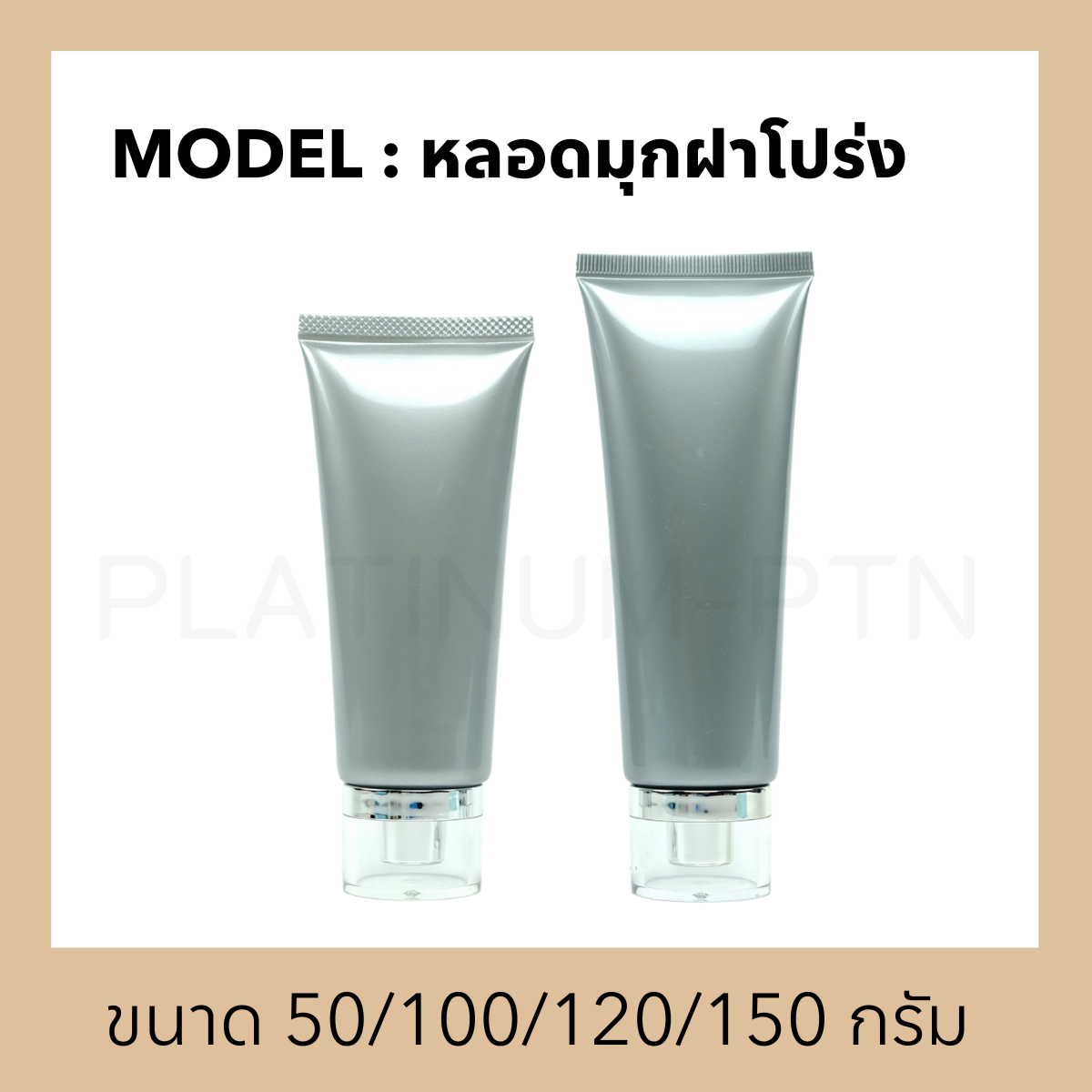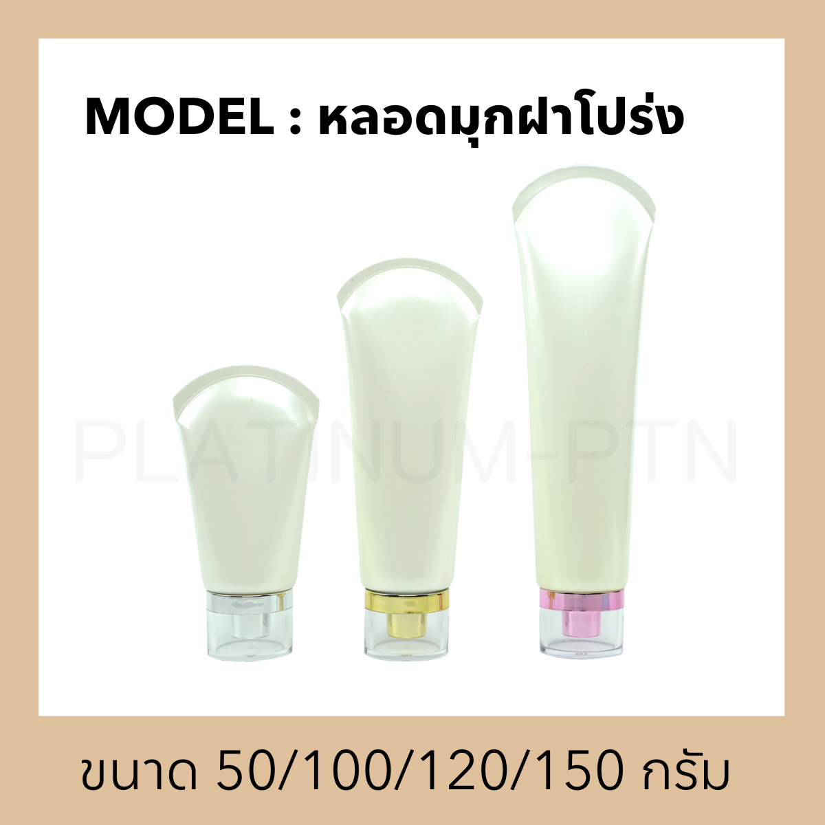 – หลอดรุ่น หลอดมุกฝาโปร่ง ขนาด 50 กรัม ราคา 14 บาท